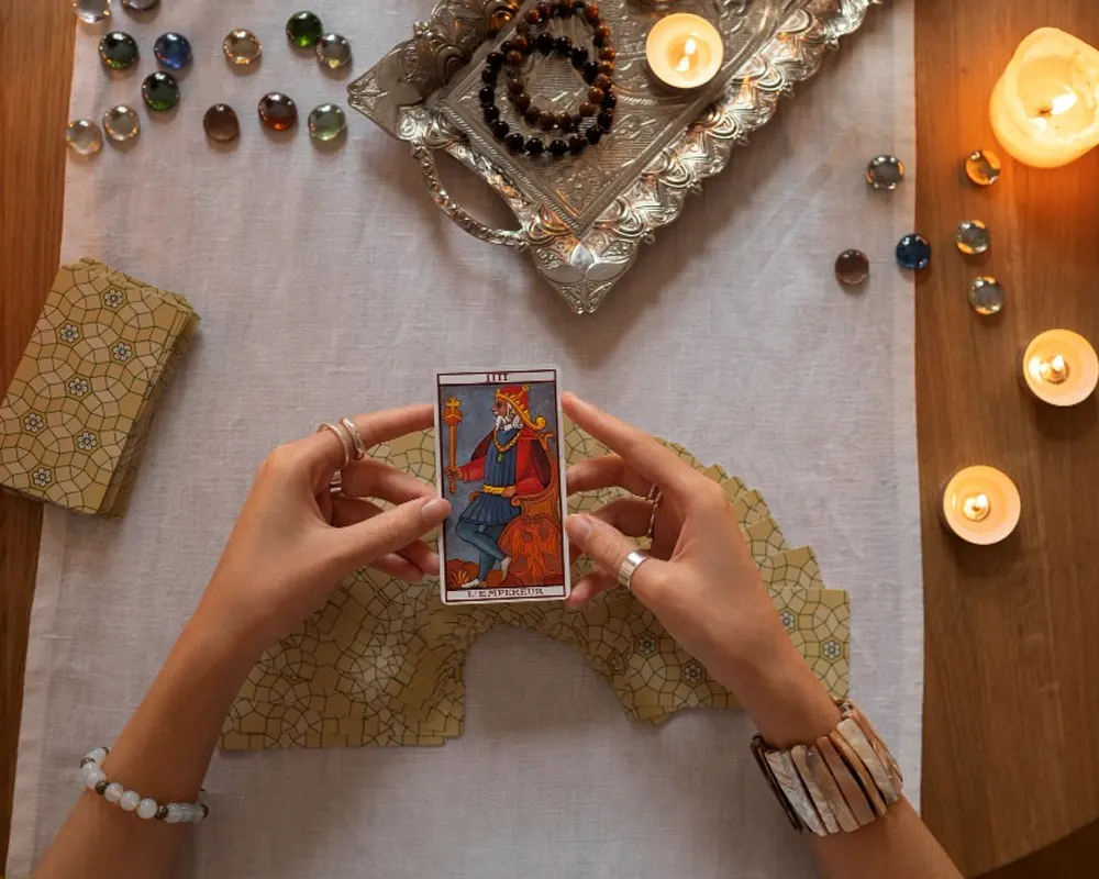 Your palms carry the story of your life—past, present, and future. Hand reading, when blended with tarot, decodes your life path, health, relationships, and career. The lines and mounts of your hand reveal destiny, while tarot adds intuitive direction to shape it.